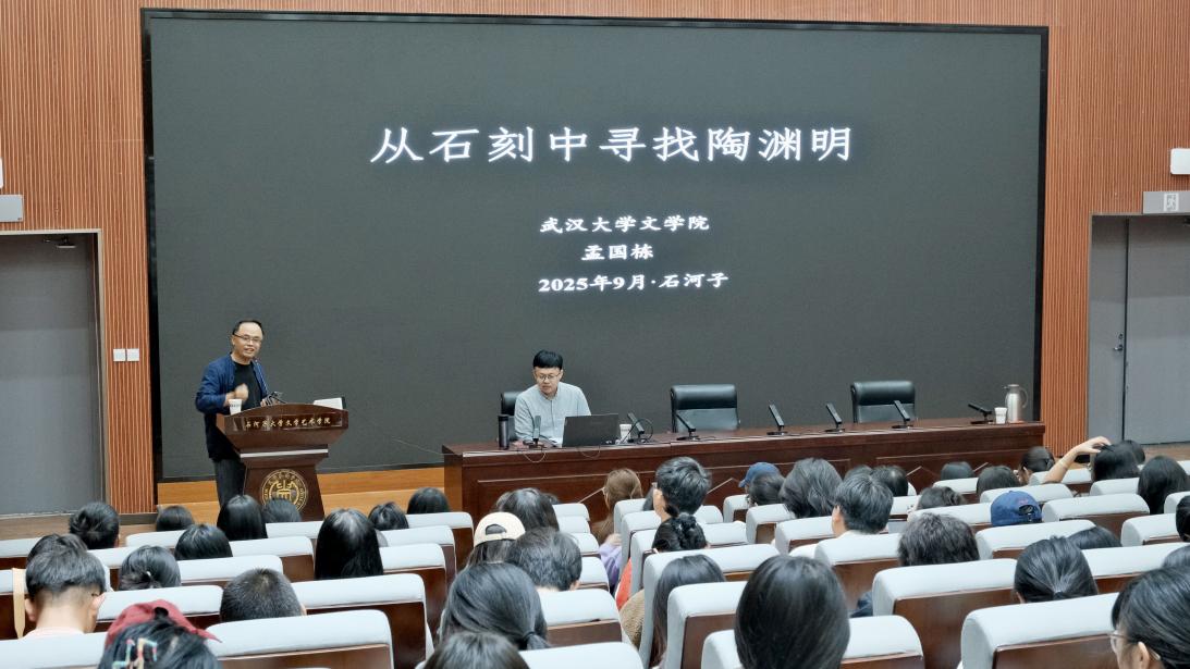 9月19日,永利集团-澳门永利集团 (新闻与传播学院)“绿洲博雅讲坛”第九十讲在南山新校区艺1015学术报告厅成功举办。武汉大学文学院教授、博士生导师孟国栋应邀作了题为《从石刻中寻找陶渊明》的专题讲座。本次讲座由王怀春教授主持,学院相关专业师生参加。