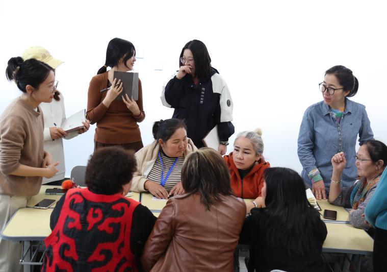 研培期间,学员们积极开展跨民族技艺交流,在AI辅助设计等实践环节中成功实现了塔吉克族太阳纹、柯尔克孜族鹰纹与汉族云纹等多民族纹样的创新融合。学员们纷纷表示,通过系统学习,不仅专业技能得到提升,更对中华文化多元一体的深刻内涵有了更深层次的理解,未来将把所学理论方法与设计理念充分运用于创作实践,让刺绣真正“活”在当下。
