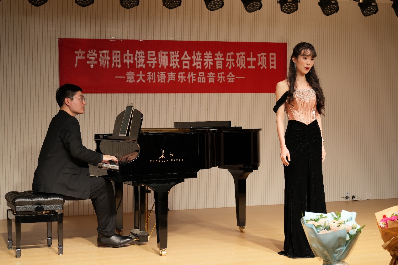 值得关注的是,此次音乐会是周梅梅老师主持的《产学研用——中俄导师联合培养音乐研究生项目》的重要实践成果。该项目聚焦产学研用深度融合,旨在破解音乐专业研究生教学与国际合作实践中的重难点问题。尽管项目以中俄联合培养为核心方向,但同时注重多语种声乐表演能力与国际艺术视野的综合培育。此次意大利语声乐实践,不仅为研究生搭建了专业能力展示平台,更探索出一条兼具国际教育背景与舞台实践能力的声乐表演人才培养新路径。