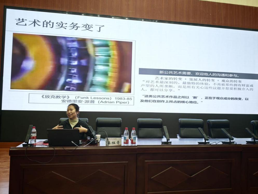 姜祖青教授以《从观众到玩家——互动型行为如何重塑公共艺术》为题,聚焦当代公共艺术的互动性转型。她指出,公共艺术正从静态观赏走向深度参与,互动设计正在重构艺术的参与方式、开放形态与社会价值。讲座结合国内外经典案例,系统阐释了公众参与如何激活公共空间、传递时代精神,为公共艺术创新发展提供了清晰路径。